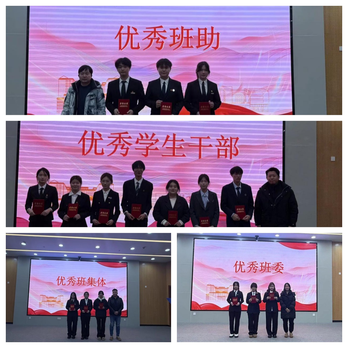 1月7日下午,智能建造学院“三优”表彰大会在长江楼惟勤厅隆重举行。党委学生工作部冯勇老师,智能建造学院学工秘书罗鹍、团委副书记李叶、辅导员黄波老师出席大会。